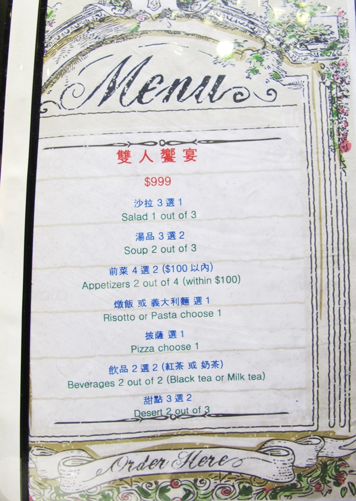 首先服務生會先送上一杯水跟菜單,如下 (點開圖片都可以放大)