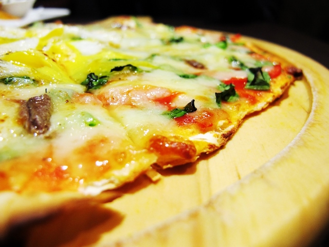 但因為怕鯷魚太過鹹,台灣人會吃不習慣,於是特別切成碎塊平均鋪在披薩上面。